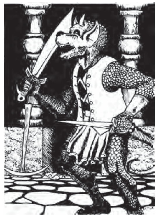 Serjeant Dei Leiy, Race (F), Class Fighter (1), LG, STR: 12, INT: 11 , WIS: 7, DEX:13 , CON: 12, CHR: 16, HP: 9, AC: 7, GP: , XP: 0,