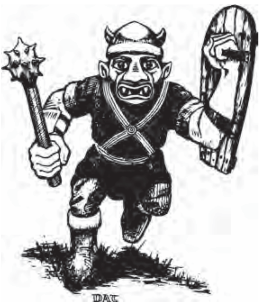Round 2. Tied initiative (5=5). Daryl, Trent and Pigeon all hit and kill 3 goblins. Two goblins roll high (15) but it is not enough to tag Daryl or Primeau.